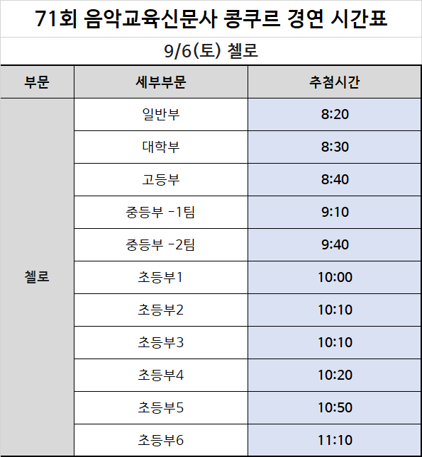 ※ 추첨시간 공지|71회 콩쿠르 |9/6(토) 첼로