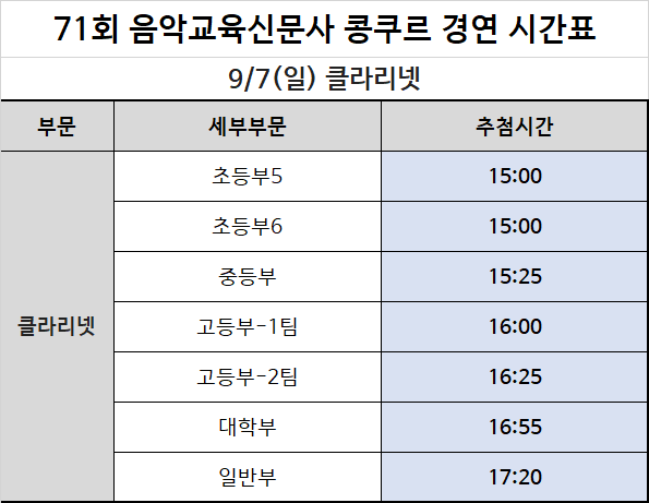 ※ 추첨시간 공지|71회 콩쿠르 |9/7(일) 클라리넷